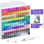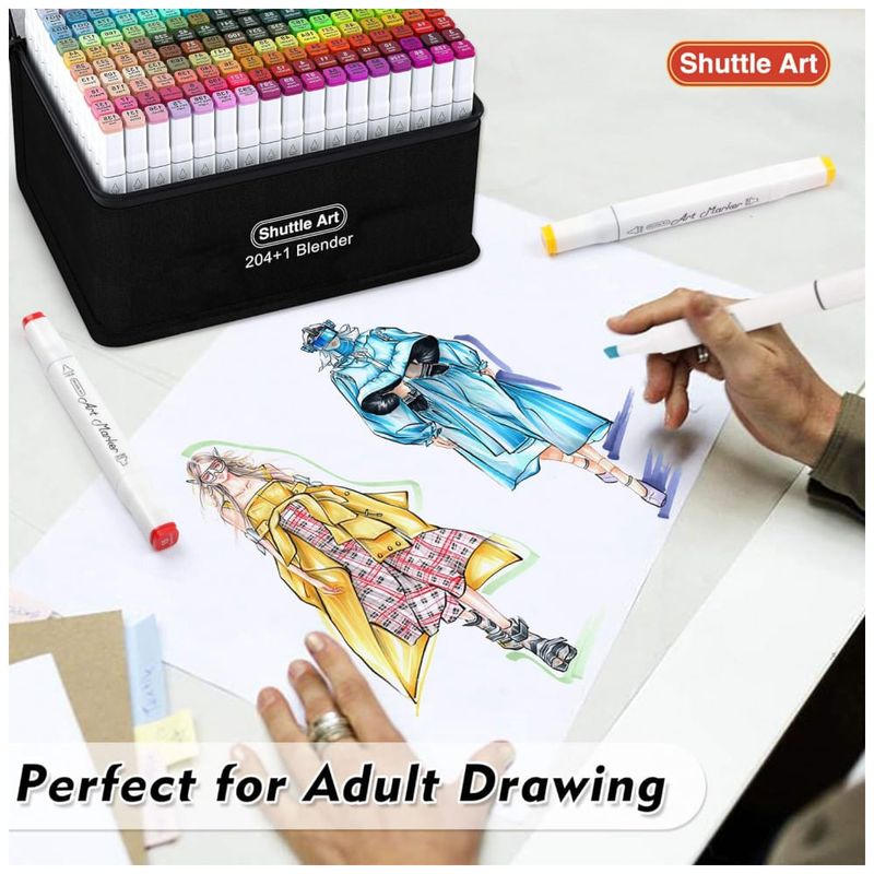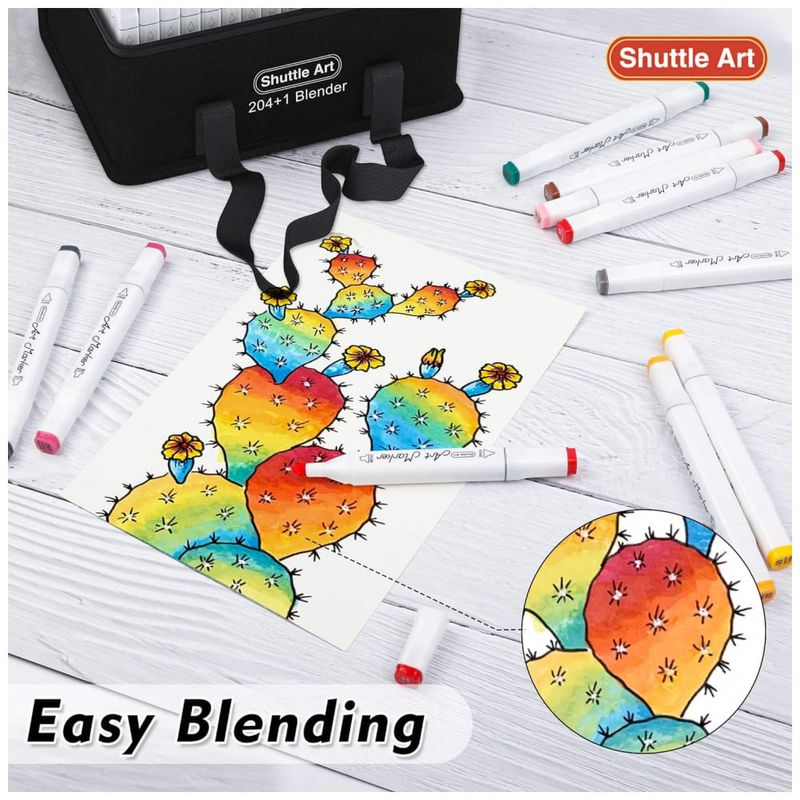 205 CORES ACESSÓRIOS 204 marcadores permanentes vibrantes 1 liquidificador incolor 1 bloco de marcadores 1 estojo de zenamento 1 cartela de cores. Nosso bloco de marcadores tem uma superfície lisa que pode evitar sangramento, manchas e enevoamento para o seu trabalho artístico, estojo preto com zíper é perfeito para zenamento e viagens, tabelas de cores podem registrar sua coleção de cores em um só lugar. Mais acessórios com preço mais barato