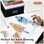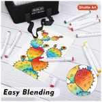 FÁCIL DE MISTURAR TINTA E FORMA QUADRADA Os marcadores de ponta dupla Shuttle Art misturam se e estratificam se bem sem deixar riscos para trás e secar rapidamente. Misturar cores é muito fácil, colocando uma cor única em outra, criando uma paleta de cores ilimitada. O barril em forma de quadrilátero ergonômico exclusivo pode ser deslizado com facilidade e conforto. A forma única também evita que os marcadores saiam de superfícies lisas.