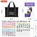172 CORES ACESSÓRIOS 171 marcadores permanentes vibrantes 1 liquidificador incolor 1 bloco de marcadores 1 estojo de zenamento 1 cartela de cores. Nosso bloco de marcadores tem uma superfície lisa que pode evitar sangramento, manchas e enevoamento para o seu trabalho artístico, estojo preto com zíper é perfeito para zenamento e viagens, tabelas de cores podem registrar sua coleção de cores em um só lugar. Mais acessórios com preço mais barato