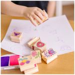 Este conjunto de arte contém nove selos, um bloco de tinta de duas cores e cinco lápis de cor, todos convenientemente armazenados em uma caixa de madeira resistente. Com imagens de tema de amizade, incluindo borboletas, arco íris, ursinhos de pelúcia, vários corações e flores e um buquê de balões, as crianças podem carimbar e desenhar quantas vezes quiserem. As peças são guardadas ordenadamente na caixa de armazenamento de madeira com tampa transparente, facilitando a organização.
