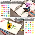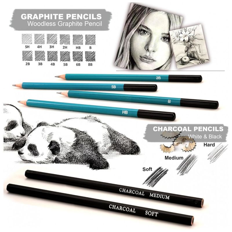 O kit acompanha um sketchbook e um bloco de papel para aquarela em formato aproximado de 15,2 cm x 22,9 cm, o que permite iniciar exercícios com técnicas secas e úmidas sem compra de blocos adicionais. O conjunto inclui também um tutorial de desenho com orientações passo a passo, voltado para adultos que desejam estruturar a prática de desenho.
