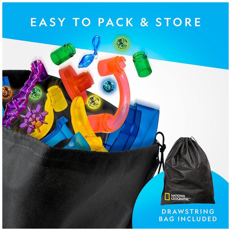 ZENAMENTO CONVENIENTE Uma bolsa de zenamento e uma bolsa de mármore facilitam o zenamento de peças de construção com mármore e brilham nas bolinhas escuras em um só lugar. Faz um ótimo presente STEM para meninos e meninas