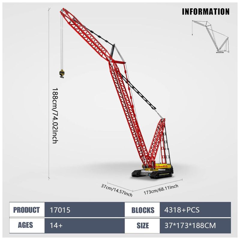 O kit inclui 4318 peças de blocos de construção, todas embaladas individualmente, além de instruções detalhadas e fáceis de entender. Este guindaste sobre esteiras é um modelo de brinquedo legal e também pode ser exibido como um item colecionável.