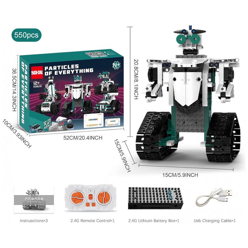 Controlo remoto e controlo APP: Os robôs inteligentes podem ser controlados através de ligação Bluetooth em aplicações móveis. Modo de controlo remoto, modo de percurso, sensor de gravidade e modo de programação, e quatro modos de controle remoto são simples e fáceis de usar. Além disso, ele também pode ser controlado através do controle remoto 2.4GHz incluído na embalagem. A distância de controle remoto do robô de construção excede 20 metros. Faça a sua experiência mais flexível e fácil de controlar.
