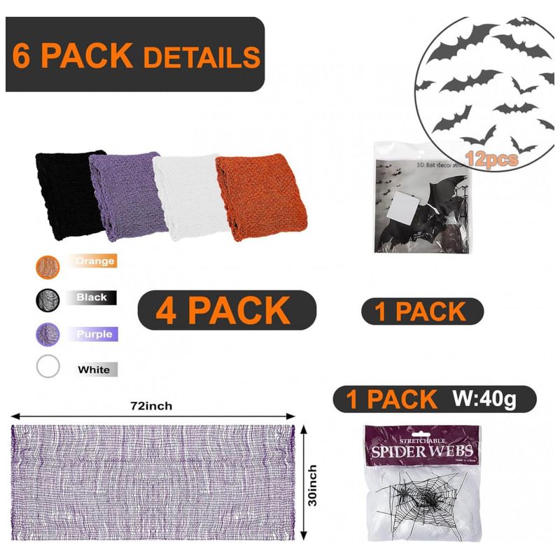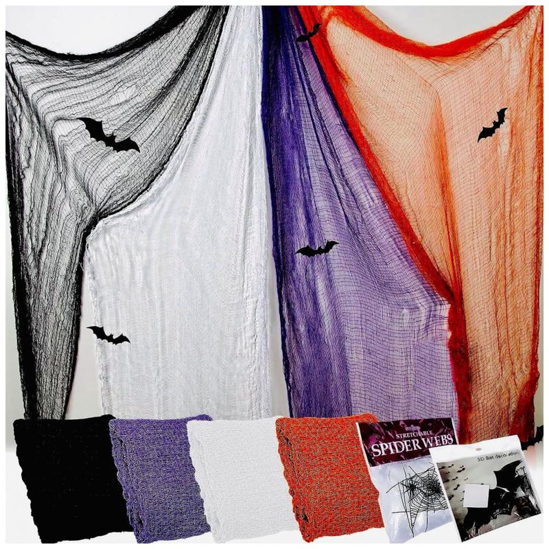Realista e assustador: Você pode fazer buracos no pano assustador, pendurando algumas aranhas, caveiras ou outras decorações de Halloween na rede. Projete formas de gaze assustadoras de Halloween e posições de suspensão de acordo com seus próprios interesses e ideias. Ideal para decorar uma casa assombrada assustadora com o pano de tecido assustador no Halloween, fornecendo a melhor atmosfera para cenas terríveis, fotos ou imagens sangrentas