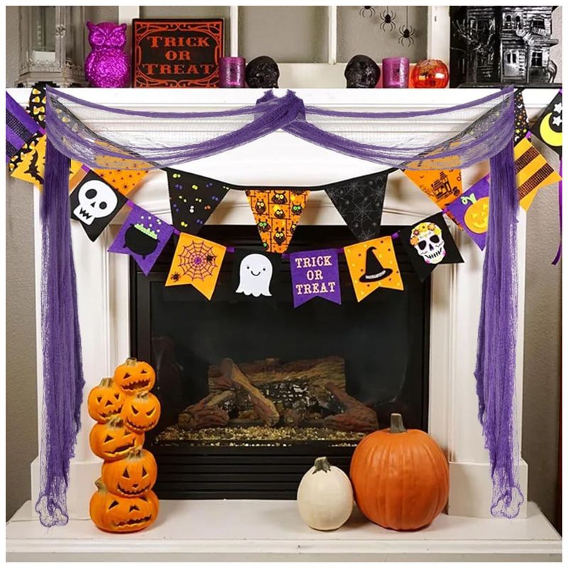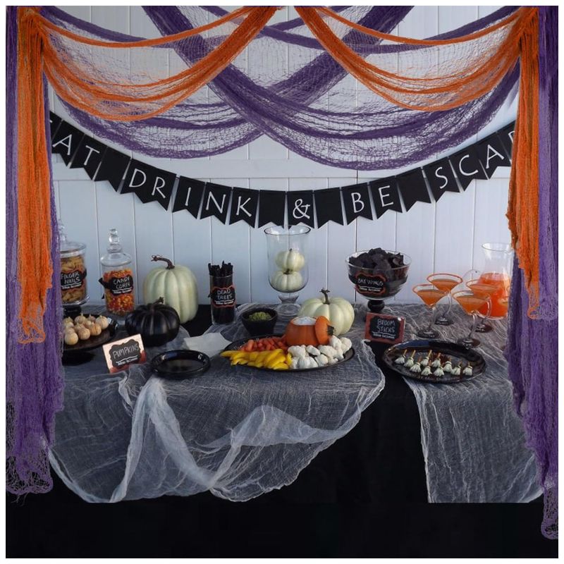 Mais combinações: Combine com outras decorações de festa de Halloween, como esqueletos de Halloween, decorações de abóbora de Halloween, estampas sangrentas, etc