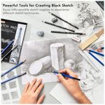 Ferramentas inclusas: 2 apontadores, 1 faca artística, 1 lixa (sandpaper), 1 borracha plástica, 1 borracha limpa-tipos, 1 pincel, 3 estompes de papel para esfumar e 1 extensor de lápis, além de manual de uso.