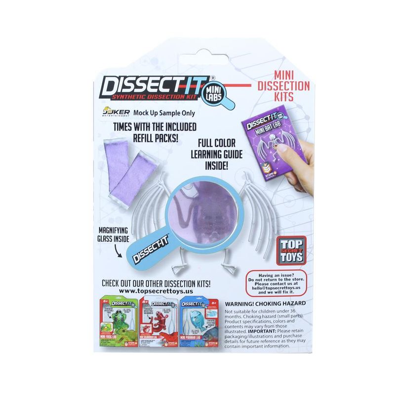Explore o mundo da biologia com o Kit de Dissecação Mini Lab Dissect-It - Morcego! Ideal para quem ama ciência e curiosidades sobre os animais, o kit proporciona uma experiência educativa e interativa, simulando uma dissecação real de forma totalmente segura. Feito com material sintético especial, o modelo revela os órgãos e ossos do morcego, permitindo aprender de forma prática e sem sujeira. O kit inclui modelo dissecável de morcego com órgãos e estrutura óssea, instrumento cirúrgico 2 em 1 (bisturi e pinça), lupa, mesa de dissecação, manual em português e 1 refil de gel para novas explorações.