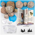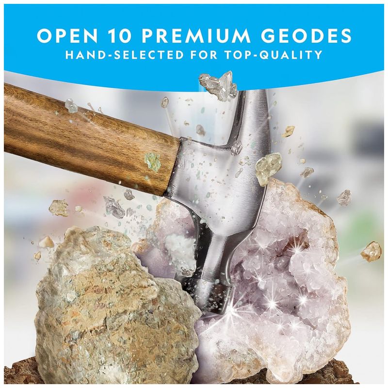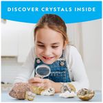 DESCUBRA O TESOURO CRISTAL Abra essas pedras para revelar cristais incríveis por dentro A geologia não fica mais emocionante do que quebrar pedras abertas e encontrar tesouros de cristal. Uma ótima atividade STEM que também é um excelente presente para meninas e meninos