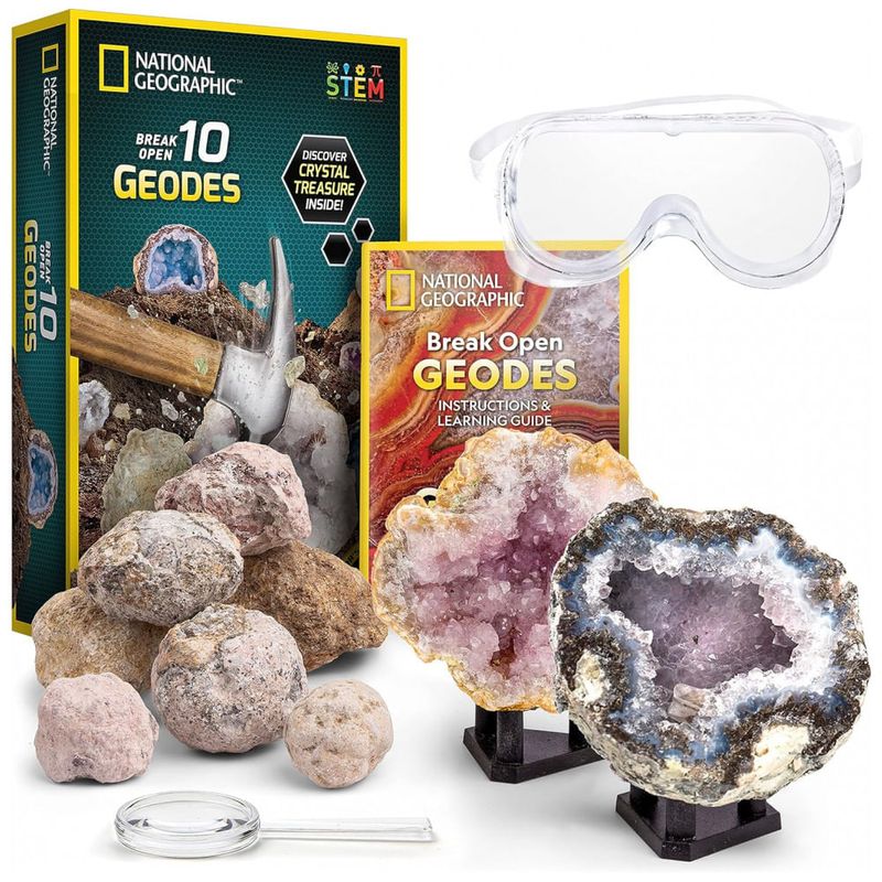 16 GUIA DE APRENDIZAGEM DE COLOR COMPLETO Você aprenderá tudo sobre a fascinante ciência por trás de como os geodos são formados no guia de aprendizado detalhado e colorido. Os brinquedos educacionais da National Geographic tornam a ciência e o aprendizado divertidos, e são os presentes STEM perfeitos para meninos e meninas