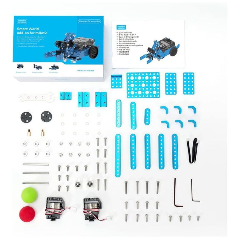 O Kit de Expansão 3 em 1 foi projetado para trazer o conceito de mundo inteligente para a experiência de aprendizado, proporcionando mais possibilidades para exercitar habilidades de colaboração, exploração e resolução de problemas. Com uma variedade de tópicos de ensino, como Cidade Inteligente, Fazenda Inteligente, Logística, entre outros, este kit oferece 3 novos designs de expansão: Braço Robótico, Transportador Robótico e Robô de Levantamento. Amplie o potencial do seu mBot2 com esse kit incrível! Por favor, observe que o robô mBot2 não está incluído.