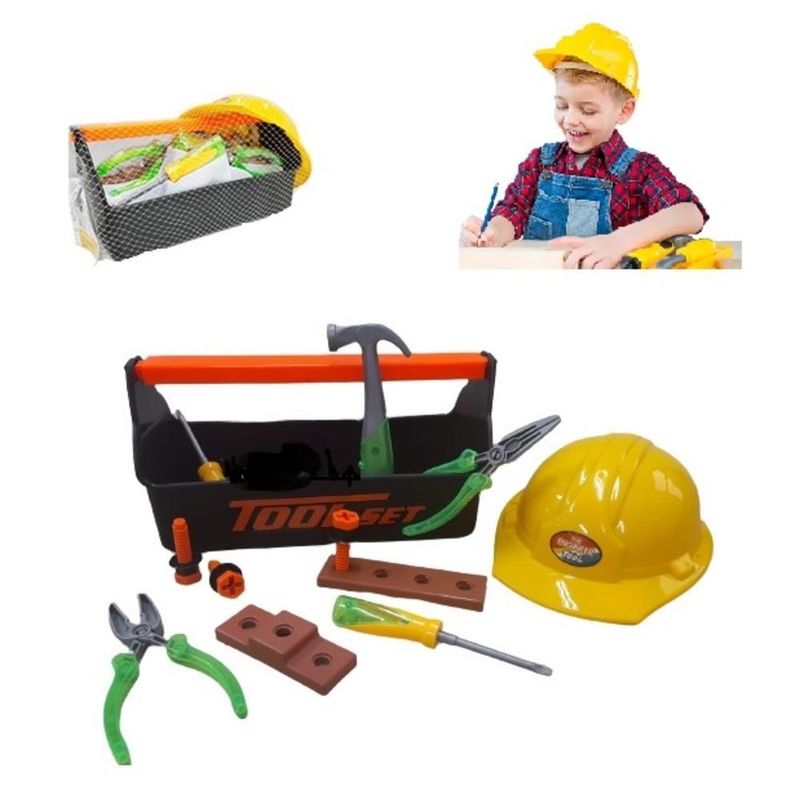 KIT DE FERRAMENTAS INFANTIL COM CAPACETE E MALETA ENGENHEIRO CONSTRUTOR BRINQUEDO