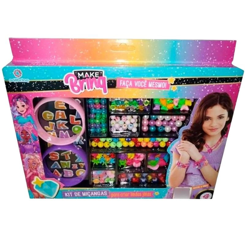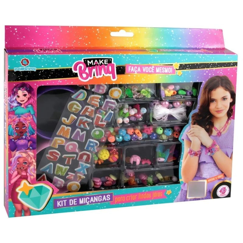 - Conteúdo da Embalagem: Miçangas coloridas, acessórios e linhas