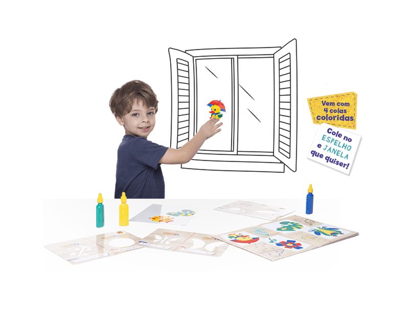 Decore a Sua Janela com Esse Kit Incrível com 4 Colas Coloridas, 3 Estêncils, 2 Folhas Transparentes e 1 Manual de Instruções. Cole No Espelho e Janela Que Quiser! Gruda e Desgruda sem Deixar Sujeira!