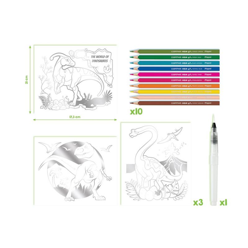 Desperte a criatividade e o interesse pelo mundo pré-histórico com o Kit De Pintura Aquarelável - O Mundo Dos Dinossauros da Maped! Este kit emocionante é perfeito para pequenos artistas que adoram dinossauros. Com ele, as crianças podem explorar sua imaginação e habilidades artísticas enquanto pintam cenas incríveis do tempo dos dinossauros.