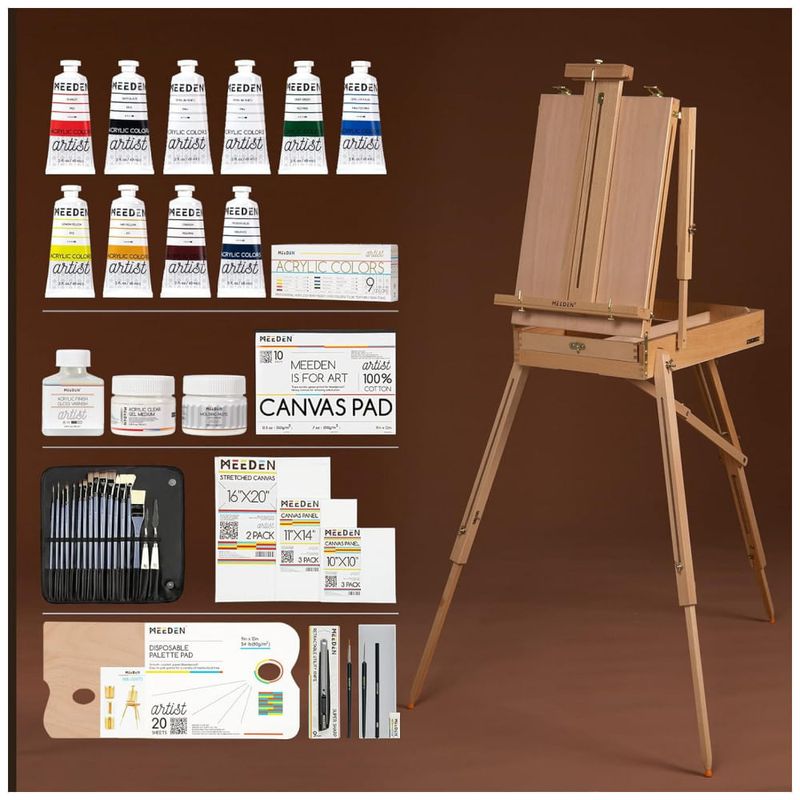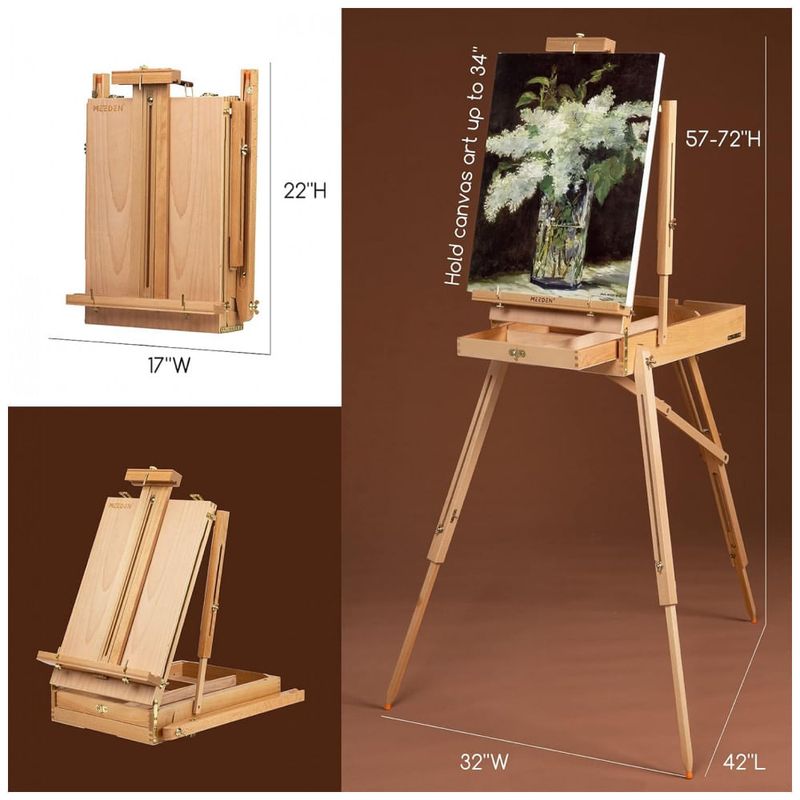 CAVALETE FRANCÊS EM MADEIRA DE FAIA PRÉ MONTADO O cavalete francês chega pré montado, resistente, durável, bonito, de excelente qualidade e muito espaço de zenamento, perfeito para pintura a ar ou campo Plein. Conjunto de tinta acrílica Meeden de 15 cores, garrafas 100ml, 3,38 onças não tóxicas, cores ricas em pigmentos, ótimas para artistas, iniciantes e adolescentes pintando em tela de madeira tecido artesanato em cerâmica