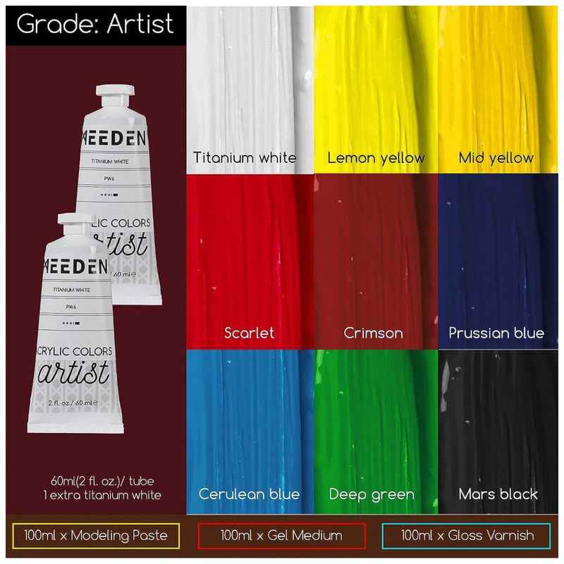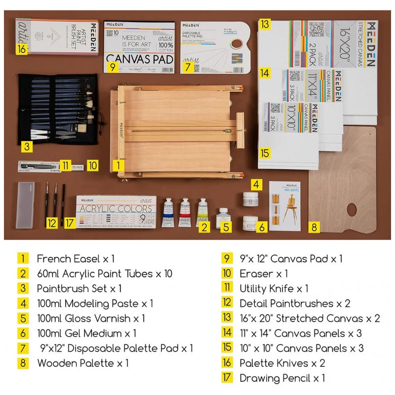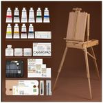 GRANDE KIT DE PINTURA DE VALOR DELUXE COM TUDO O QUE VOCÊ PRECISA O luxuoso kit de pintura acrílica com tudo o que você precisa para pintar. Incluindo cavalete francês de madeira de faia maciça alemã com caixa de esboço, tintas acrílicas de 15 cores de alta qualidade, quadros de tela grandes, painéis de lona, pincéis de nylon de alta qualidade e muito mais, todos de qualidade de nível artístico