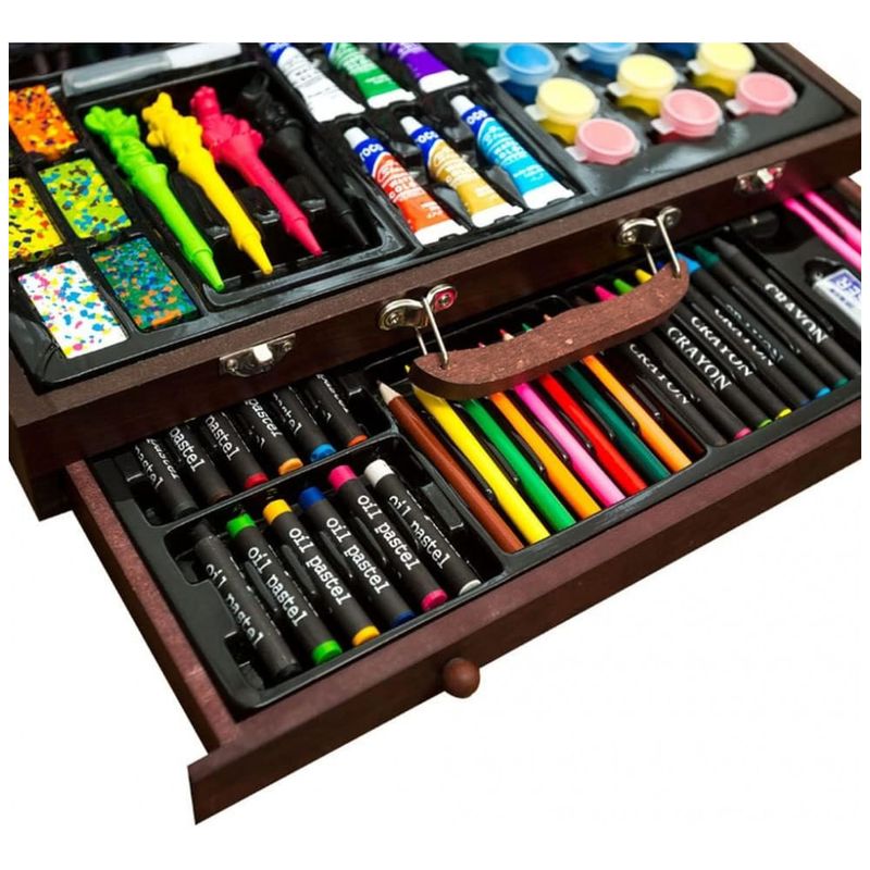 LIVROS E PAPELARIAMATERIAIS ESCOLARESESTOJOSKit de Pintura XARONF com 130 Peças e Caixa de madeira Portátil, Marrom Escuro
