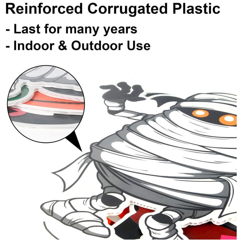 RESISTENTE AO TEMPO: Os sinais do quintal de Halloween são projetados especialmente para suportar todo o clima. Eles são feitos de materiais à prova dágua que resistem efetivamente ao desbotamento, garantindo que suas cores vibrantes permaneçam intactas, mesmo quando expostas à chuva ou ao sol intenso.