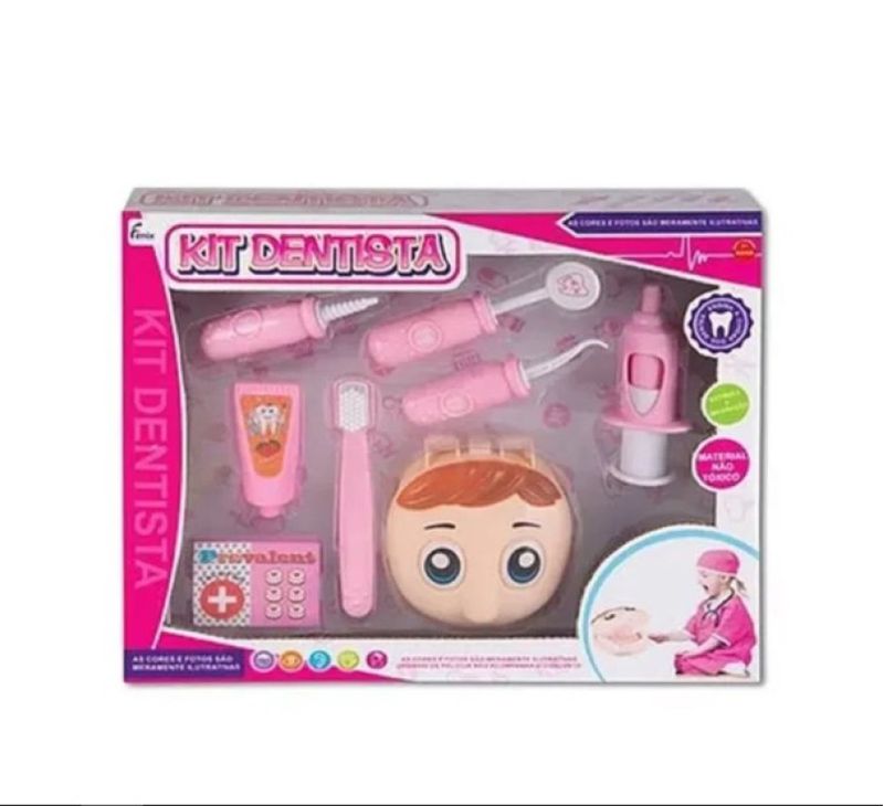 O faz de conta vai ficar incrível com este maravilhoso kit com tudo que uma boa dentista precisa ter. Vem com espelho de mentirinha para ver aquela cárie bem lá no fundo, espátula para arrancar o dente, injeção para aplicar a anestesia, escova de dente, motorzinho para tratar daquele dente difícil e até mesmo uma boquinha para usar todas essas ferramentas! As crianças vão se divertir de montão cuidando dos dentinhos dos seus pacientes!