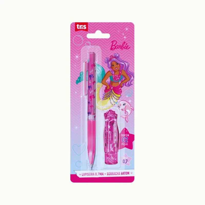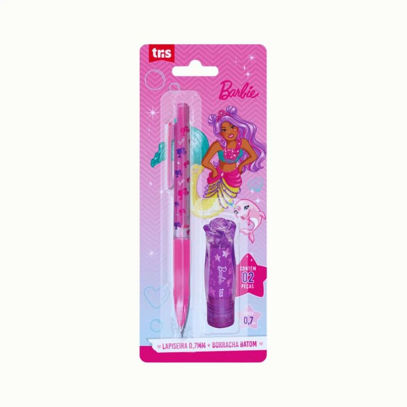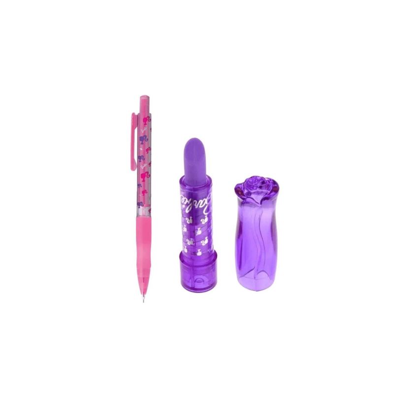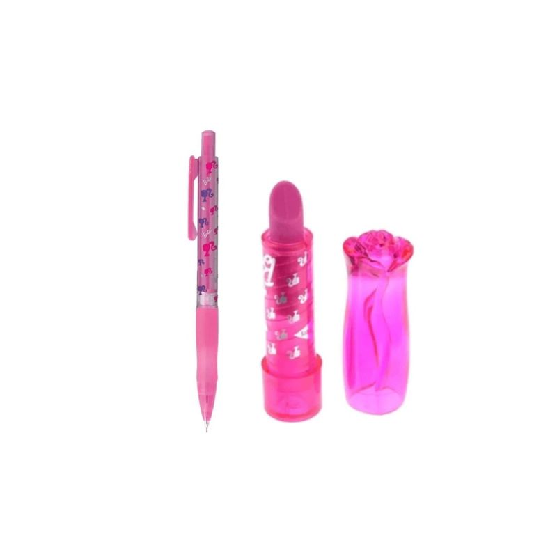 KIT ESCOLAR BORRACHA BATOM + LAPISEIRA 0,7MM - BARBIE - SORTIDO - TRIS