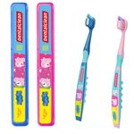 Um estojo prático para levar para escola ou para viagens, e a escova certa para deixar os dentes de seus filhos longe do grande inimigo, as Cáries.