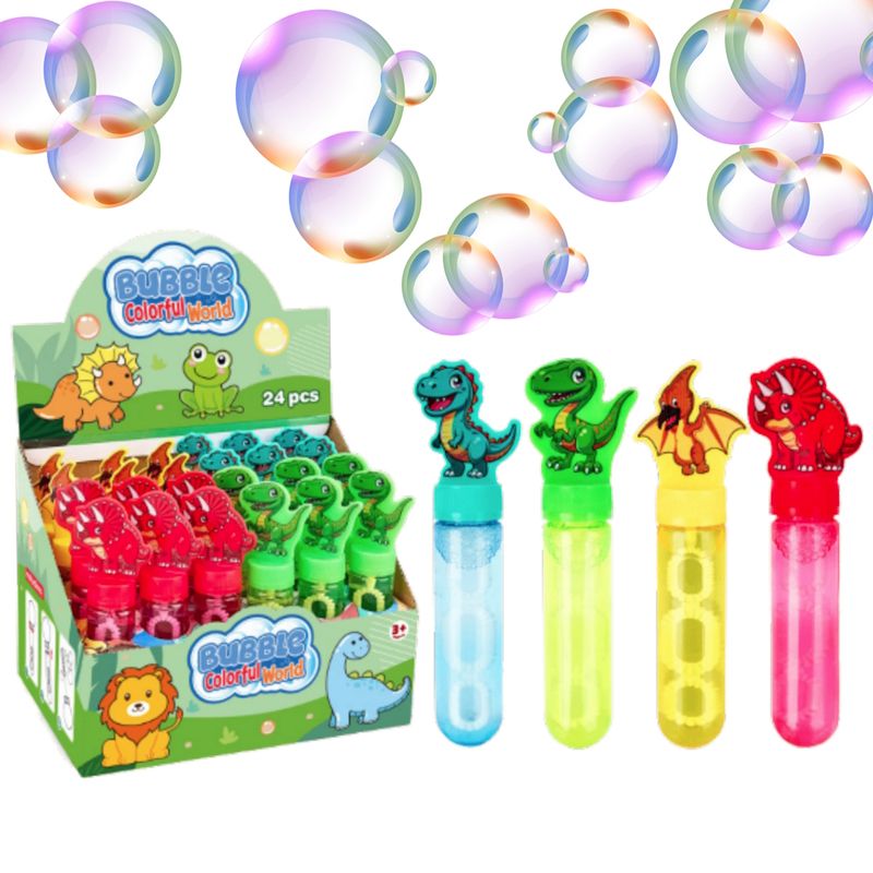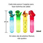 Caixa com 24 Tubos de Bolhas de Sabão Dinossauros Atacado Festa Infantil Lembrancinha