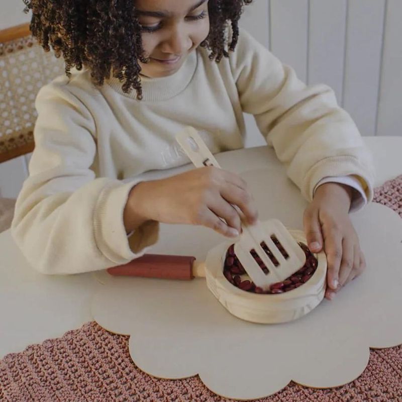 Com a Frigideira e Espátula com detalhes em Terracota, a criança utilizará a imaginação e a criatividade, reproduzindo atividades do cotidiano ao brincar de preparar as mais diversas refeições.