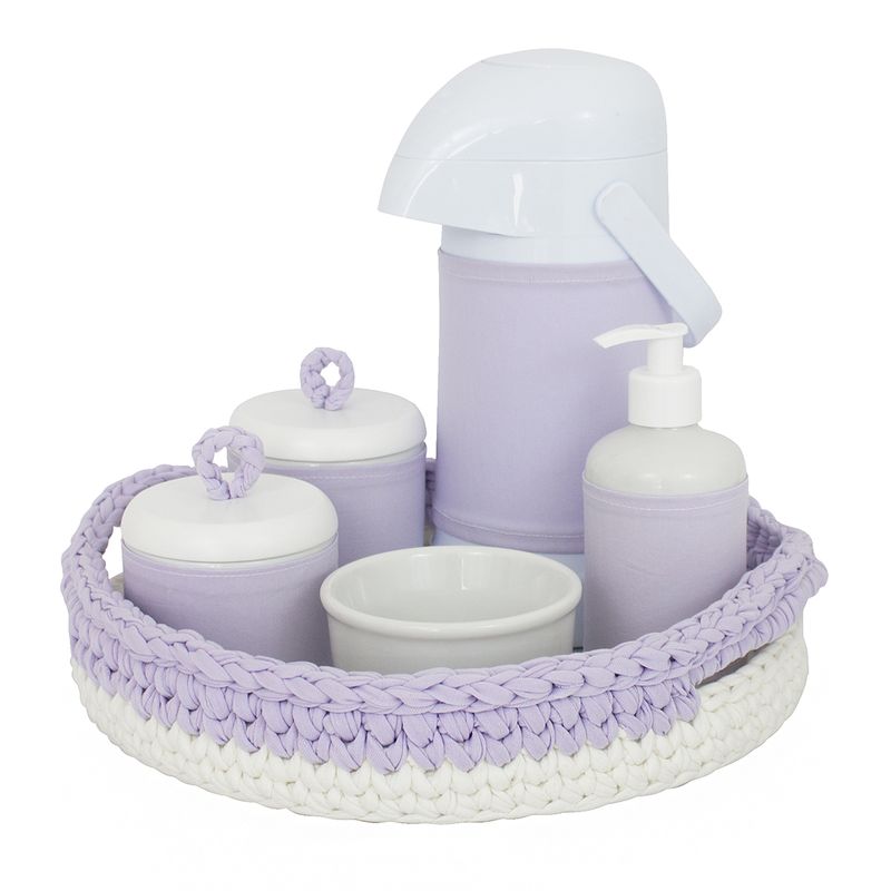 Desenvolvido para levar praticidade para vida das mamães, que precisam ter os produtos sempre às mãos, este kit possui os recipientes ideais para armazenar os itens de higiene do bebê. Além, é claro, de compor uma decoração especial em crochê que está super em alta!