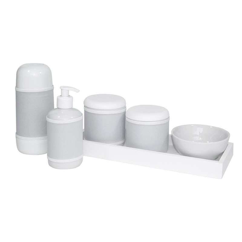 Kit Higiene Slim Branco Garrafa Pequena Capa Cinza Liso
