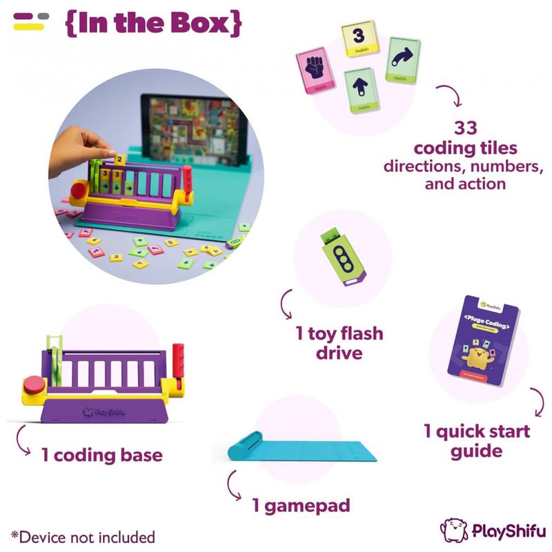 O PLUGO CODING da PlayShifu é o kit inicial de codificação perfeito para as crianças aprenderem os conceitos básicos do código por meio de jogos digitais divertidos. Este brinquedo prático de codificação permite explorar as infinitas possibilidades do código e da criatividade, utilizando uma abordagem simples baseada em blocos. As peças do kit são usadas pelas crianças para formar blocos de código, progredindo nos jogos para aprender e dominar os fundamentos da codificação.