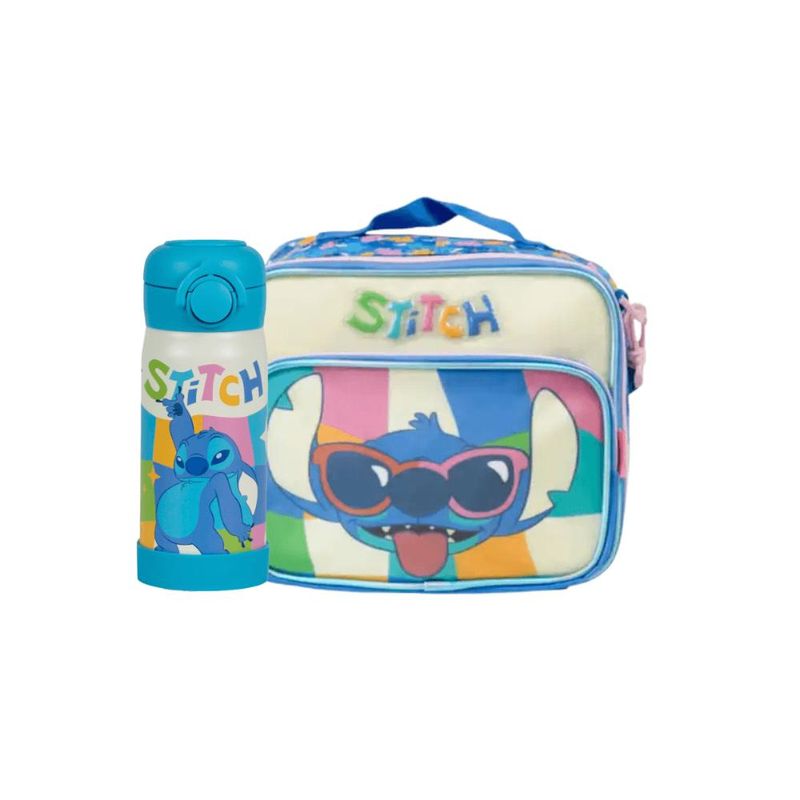 Kit composto por lancheira térmica e garrafa térmica de 350ml, com estampa do personagem Stitch. A lancheira possui revestimento interno térmico, ideal para manter os alimentos conservados por mais tempo, além de fechamento em zíper e alça superior que facilita o transporte.A garrafa térmica tem capacidade de 350 ml, é leve, prática e ideal para o consumo de água ou bebidas ao longo do dia. O kit apresenta design feminino, na cor azul, sendo indicado para uso escolar, passeios e atividades do dia a dia. Produzido com materiais resistentes e duráveis, garantindo praticidade e funcionalidade. Especificações: