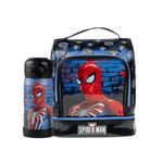 O Kit Lancheira Térmica Masculina + Garrafinha Térmica 350ml Homem Aranha Azul Escur foi criado para a rotina escolar de crianças que amam o super-herói mais icônico da Marvel. Especificações: