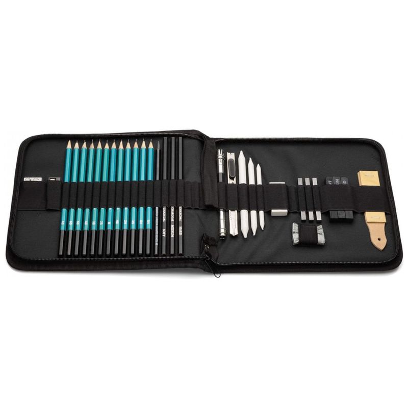 CASO TAMANHO DE VIAGEM apresenta um estojo com zíper, compartimentado para todos os seus suprimentos. Este conjunto de arte é certo para agradar Defina seu ente querido por um caminho criativo, equipando o com seu primeiro conjunto de esboços completo