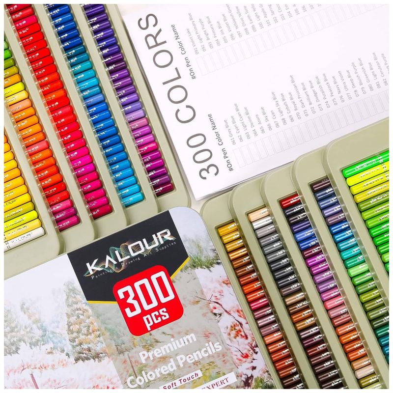 Conjunto de 300 lápis de cor o conjunto Kalour de 300 lápis de cor contém 300 cores diferentes, você pode encontrar qualquer cor que precisar para enriquecer seu livro de colorir. Conjunto perfeito para artistas adultos iniciantes.