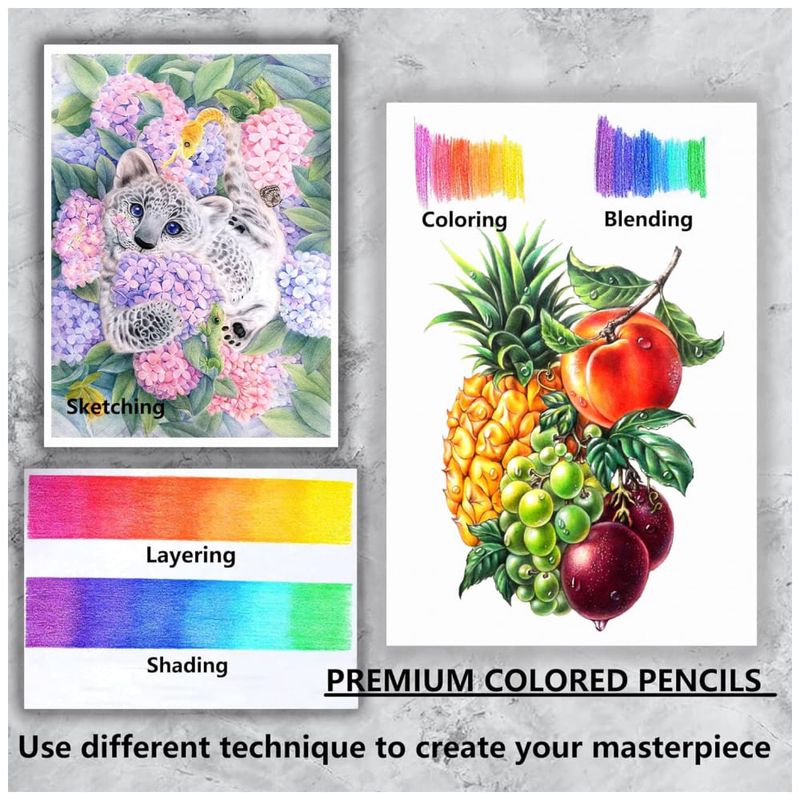 Cores vivas e vibrantes Cada lápis interno é equipado com núcleos de alta qualidade. As pontas de lápis macias e aveludadas estabelecem muitas cores vivas, o núcleo colorido é altamente pigmentado, perfeito para colorir e desenhar, etc. tom incrível, perfeito para misturar e sobrepor várias cores.