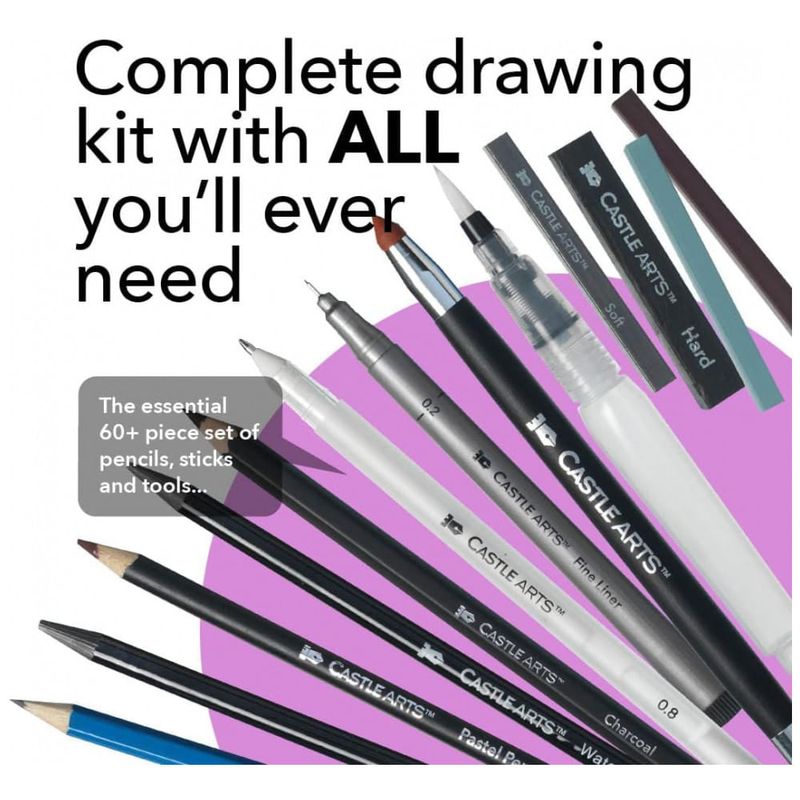 POTÊNCIA DE FOGO FORMIDÁVEL Com curadoria de artistas internos para desenhistas experientes e aprendizes lápis de grafite bastões, lápis de carvão bastões, lápis pastel bastões, lápis hidrossolúveis pincéis de água, canetas delineadoras e liquidificadores, borrachas e ferramentas.