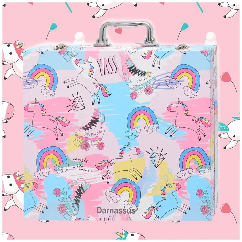 Kit Lápis de Cor Profissional com Maleta de Madeira 132 peças Tintas Acrílicas, Aquarela, Colorido, DARNASSUS 132PAPERARTSSET, Branco