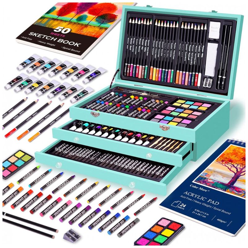 e ambiental todos os materiais de arte estão em uma caixa de madeira e cada giz de cera, lápis e pastéis nesta caixa de arte não são tóxicos. O conjunto de artistas Color More é um presente ideal para adultos, estudantes, artistas ou qualquer amante da arte