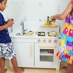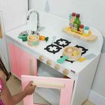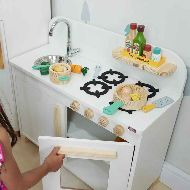 KIT EDUCATIVO COZINHA INFANTIL COMPACTA Com o nosso Kit Educativo Cozinha Infantil Compacta os pequenos descobrem que até os menores espaços podem se transformar em grandes cenários de imaginação, enquanto vivem experiências cheias de aprendizado, autonomia e criatividade com os 2 livrinhos da Turma da Eita. Produzida em MDF 15mm, reúne pia em inox com torneira, cooktop com botões que giram, forninho e armário para utensílios, além de portinhas com amortecedor tudo com acabamento resistente, seguro e fácil de limpar. Os livros educativos exclusivos da Turma da Eita trazem histórias divertidas e jogos dinâmicos, que estimulam o aprendizado e a criatividade. Além da leitura, o livro acompanha peças e acessórios essenciais para a interação com a obra, permitindo que a criança aprenda na prática enquanto monta e brinca. Com o método exclusivo EitaMontei desenvolvido especialmente para a educação infantil a montagem se torna simples, rápida e cheia de significado, unindo família, diversão e desenvolvimento. O kit contém: Livro Turma da Eita e A Cozinha Perfeita vol.1 Livro Turma da Eita e A Cozinha Perfeita vol.2 +Peças indispensáveis para interação com a obra. CARACTERÍSTICAS E FUNCIONALIDADES MATERIAL RESISTENTE: Fabricado em MDF 15mm, o mesmo utilizado em móveis planejados. DESIGN LÚDICO E REALISTA: Cozinha e geladeira com detalhes que imitam a vida real, tornando o faz de conta ainda mais divertido. LIVROS EDUCATIVOS: Histórias que incentivam a leitura, a criatividade e o vínculo familiar. FÁCIL MONTAGEM: Método EitaMontei pensado para ser um momento divertido em família, utilizando apenas uma chave PHILLIPS. DIMENSÕES: • Cozinha Infantil Compacta: Altura 69 cm | Largura 72 cm | Profundidade 30 cm