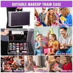 O estojo alumínio possui travas, alça superior e dimensões compactas para portabilidade e armazenamento seguro de cosméticos, pincéis ou ferramentas. Paletas individuais removíveis para uso separado, com tons matte a shimmer e fórmulas waterproof de alta pigmentação para blendagem suave.