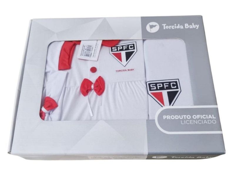 Kit Maternidade São Paulo Menina Branco - Torcida Baby O Kit Maternidade do São Paulo foi desenvolvido para os pequenos que são torcedores desde o berço. Composto por um macacão, uma manta e uma tiara, a nova geração de campeões fica devidamente fardada com as cores do São Paulo. Garanta o futuro da torcida e vista os mini torcedores com o primeiro dos muitos mantos que ainda virão. Características - Kit composto por um Macacão, Uma Manta e uma Tiara.