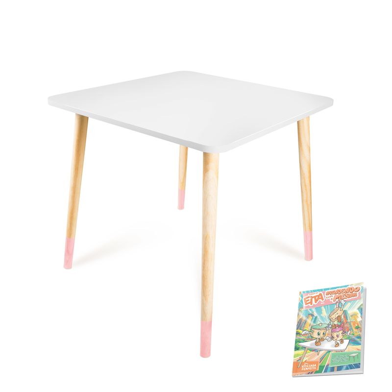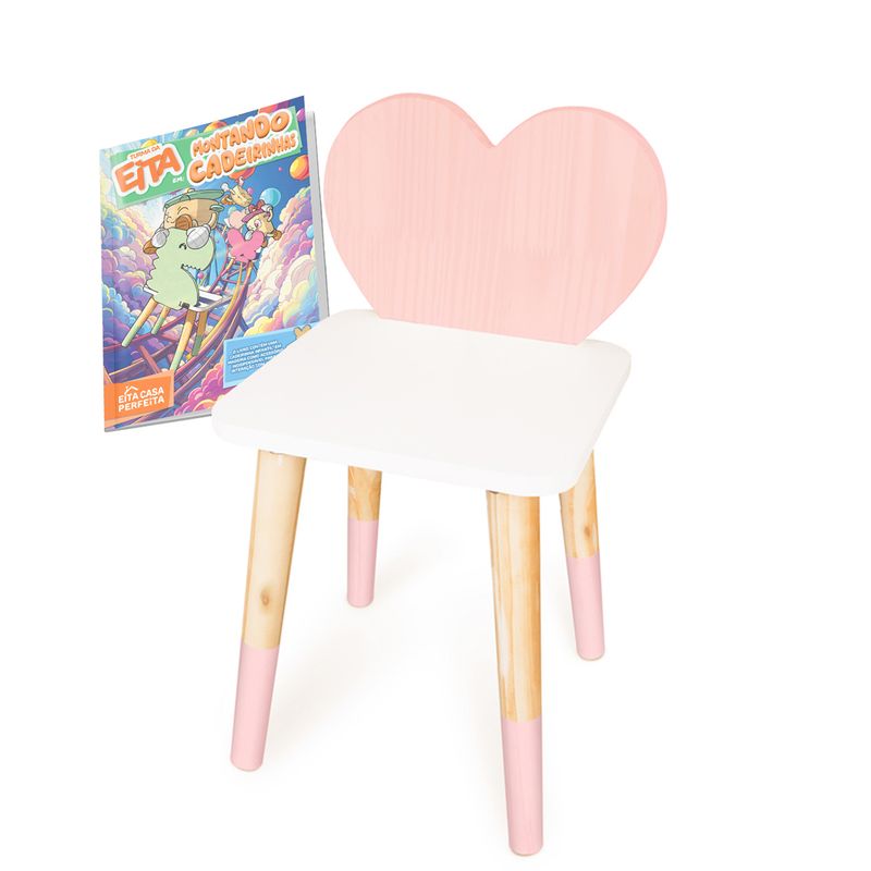 Kit Educativo Mesa Infantil com 2 Cadeiras Com o nosso Kit Educativo Mesa Infantil com 2 Cadeiras os pequenos ganham um cantinho cheio de autonomia, conforto e significado em cada detalhe, enquanto transformam cada atividade em aprendizado, imaginação e diversão com os 2 livrinhos da Turma da Eita. A altura ideal convida a criança a sentar sozinha, alcançar seus materiais e explorar com segurança, estimulando a independência e a criatividade no dia a dia. Mais do que um conjunto de móveis, é um espaço para viver momentos mágicos e inesquecíveis que ficarão para sempre guardados na memória da família! Os livros educativos exclusivos da Turma da Eita trazem histórias divertidas e jogos dinâmicos, que estimulam o aprendizado e a criatividade. Além da leitura, o livro acompanha peças e acessórios essenciais para a interação com a obra, permitindo que a criança aprenda na prática enquanto monta e brinca. Com o método exclusivo EitaMontei — desenvolvido especialmente para a educação infantil — a montagem se torna simples, rápida e cheia de significado, unindo família, diversão e desenvolvimento. O kit contém: Livro Turma da Eita Montando Cadeirinhas Livro Turma da Eita Aprendendo com a Mesinha + Peças indispensáveis para interação com a obra. CARACTERÍSTICAS E FUNCIONALIDADES AUTONOMIA: Altura ideal para que as crianças sentem e levantem sozinhas, estimulando independência. MATERIAIS DE QUALIDADE: Tampo da mesa em MDF 15mm e pés em madeira pinus; cadeiras em MDF 15mm com pés em pinus — resistentes e de fácil limpeza. DESIGN ATRAENTE: Encostos divertidos e acabamento lúdico que harmonizam com o quarto infantil. LIVROS EDUCATIVOS: Histórias que incentivam a leitura, a criatividade e o vínculo familiar. FÁCIL MONTAGEM: Método EitaMontei pensado para ser um momento divertido em família, utilizando apenas uma chave PHILLIPS.   DIMENSÕES Mesa P (3 a 7 anos): Largura 60 cm | Altura 51,5 cm | Profundidade 60 cm | Suporta até 50 kg