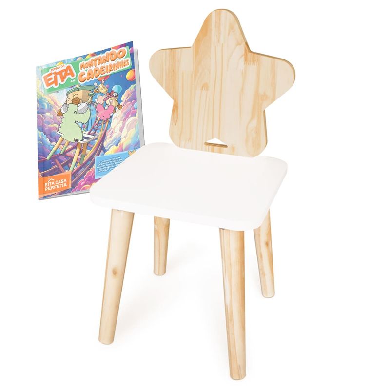 Kit Educativo Mesa Infantil com 2 Cadeiras Com o nosso Kit Educativo Mesa Infantil com 2 Cadeiras os pequenos ganham um cantinho cheio de autonomia, conforto e significado em cada detalhe, enquanto transformam cada atividade em aprendizado, imaginação e diversão com os 2 livrinhos da Turma da Eita. A altura ideal convida a criança a sentar sozinha, alcançar seus materiais e explorar com segurança, estimulando a independência e a criatividade no dia a dia. Mais do que um conjunto de móveis, é um espaço para viver momentos mágicos e inesquecíveis que ficarão para sempre guardados na memória da família! Os livros educativos exclusivos da Turma da Eita trazem histórias divertidas e jogos dinâmicos, que estimulam o aprendizado e a criatividade. Além da leitura, o livro acompanha peças e acessórios essenciais para a interação com a obra, permitindo que a criança aprenda na prática enquanto monta e brinca. Com o método exclusivo EitaMontei — desenvolvido especialmente para a educação infantil — a montagem se torna simples, rápida e cheia de significado, unindo família, diversão e desenvolvimento. O kit contém: Livro Turma da Eita Montando Cadeirinhas Livro Turma da Eita Aprendendo com a Mesinha + Peças indispensáveis para interação com a obra. CARACTERÍSTICAS E FUNCIONALIDADES AUTONOMIA: Altura ideal para que as crianças sentem e levantem sozinhas, estimulando independência. MATERIAIS DE QUALIDADE: Tampo da mesa em MDF 15mm e pés em madeira pinus; cadeiras em MDF 15mm com pés em pinus — resistentes e de fácil limpeza. DESIGN ATRAENTE: Encostos divertidos e acabamento lúdico que harmonizam com o quarto infantil. LIVROS EDUCATIVOS: Histórias que incentivam a leitura, a criatividade e o vínculo familiar. FÁCIL MONTAGEM: Método EitaMontei pensado para ser um momento divertido em família, utilizando apenas uma chave PHILLIPS.   DIMENSÕES Mesa P (3 a 7 anos): Largura 60 cm | Altura 51,5 cm | Profundidade 60 cm | Suporta até 50 kg