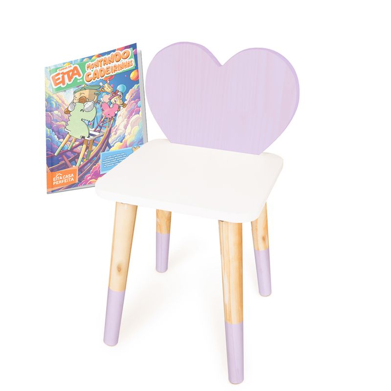 Kit Educativo Mesa Infantil e Cadeira Com o nosso Kit Educativo Mesa Infantil e Cadeira o cantinho dos pequenos ganha autonomia, conforto e significado em cada detalhe. A altura ideal convida a criança a sentar, alcançar seus materiais e explorar atividades com segurança, estimulando independência e criatividade no dia a dia. E para tornar a experiência ainda mais especial, acompanha os livrinhos da Turma da Eita, cheio de histórias e atividades que despertam imaginação, aprendizado e laços de afeto em família. Mais do que um conjunto de móveis, é um espaço para viver momentos mágicos e inesquecíveis que ficarão guardados para sempre na memória da criança! Os livros educativos exclusivos da Turma da Eita trazem histórias divertidas e jogos dinâmicos, que estimulam o aprendizado e a criatividade. Além da leitura, o livro acompanha peças e acessórios essenciais para a interação com a obra, permitindo que a criança aprenda na prática enquanto monta e brinca. Com o método exclusivo EitaMontei — desenvolvido especialmente para a educação infantil — a montagem se torna simples, rápida e cheia de significado, unindo família, diversão e desenvolvimento. O kit contém: Livro Turma da Eita Montando Cadeirinhas Livro Turma da Eita Aprendendo com a Mesinha + Peças indispensáveis para interação com a obra. CARACTERÍSTICAS E FUNCIONALIDADES AUTONOMIA: Altura ideal para que as crianças sentem e levantem sozinhas, estimulando independência. MATERIAIS DE QUALIDADE: Tampo da mesa em MDF 15mm e pés em madeira pinus; cadeiras em MDF 15mm com pés em pinus — resistentes e de fácil limpeza. DESIGN ATRAENTE: Encostos divertidos e acabamento lúdico que harmonizam com o quarto infantil. LIVROS EDUCATIVOS: Histórias que incentivam a leitura, a criatividade e o vínculo familiar. FÁCIL MONTAGEM: Método EitaMontei pensado para ser um momento divertido em família, utilizando apenas uma chave PHILLIPS.   DIMENSÕES Mesa P (3 a 7 anos): Largura 60 cm | Altura 51,5 cm | Profundidade 60 cm | Suporta até 50 kg