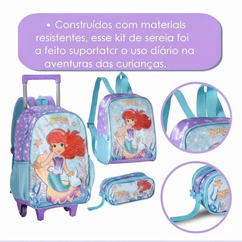 Kit Mochila Carrinho 16 Estojo E Lancheira Sereias Encantos