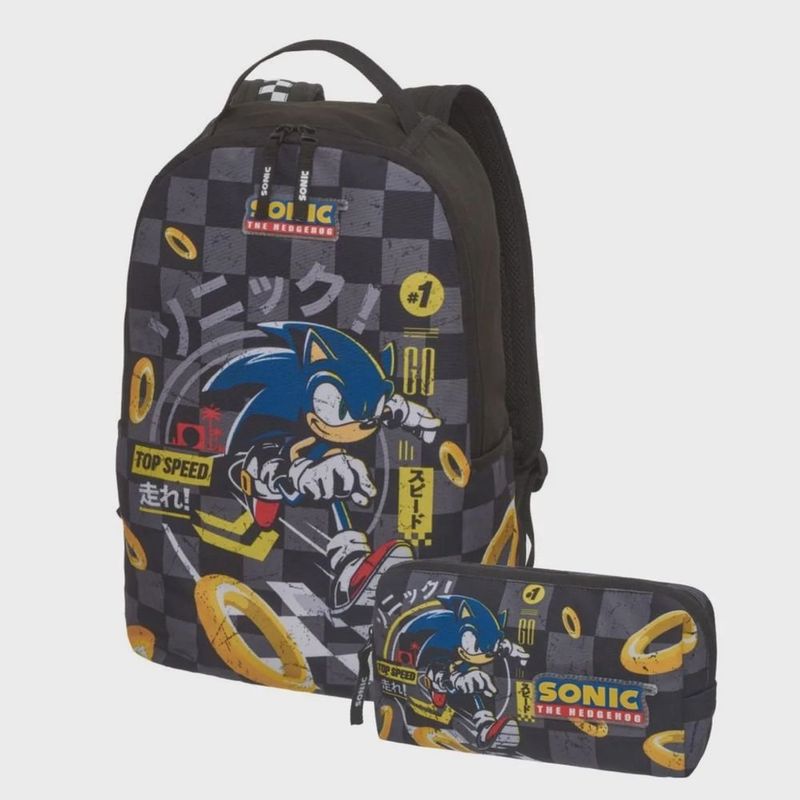 Kit Mochila Costas+ Estojo Sonic Top Speed Pacific