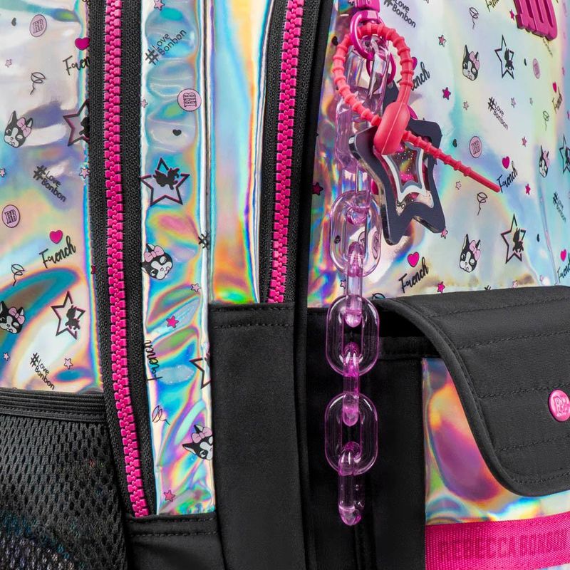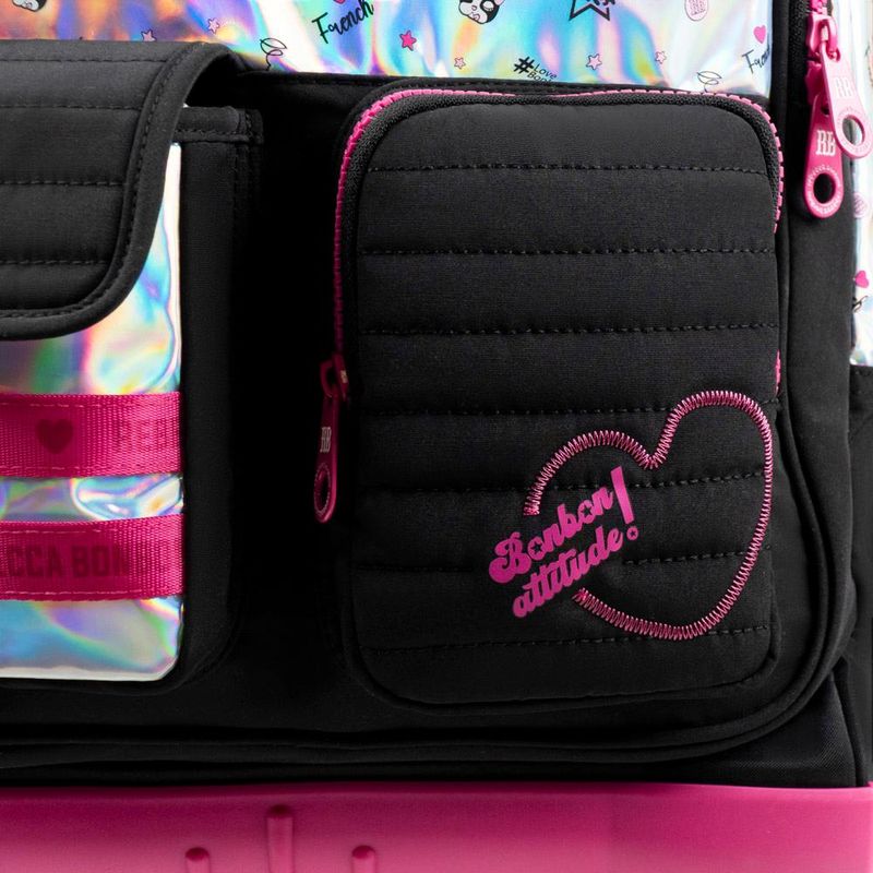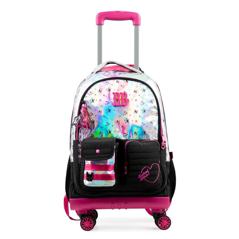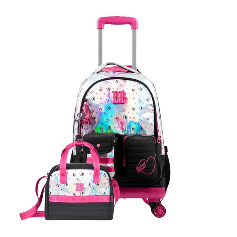 O Kit Mochila de 4 Rodinhas com Lancheira Térmica Rebecca BonBon Preta é perfeito para quem busca praticidade, conforto e muito estilo na rotina escolar. Com design sofisticado da marca Rebecca BonBon, o kit combina funcionalidade com um visual moderno e feminino.A mochila com 4 rodinhas oferece mais estabilidade e facilita o transporte do material escolar, reduzindo o peso nas costas. Possui alça retrátil, amplo espaço interno e compartimentos bem distribuídos. A lancheira térmica conserva os alimentos na temperatura ideal por mais tempo, sendo ideal para a escola e passeios. Especificações: