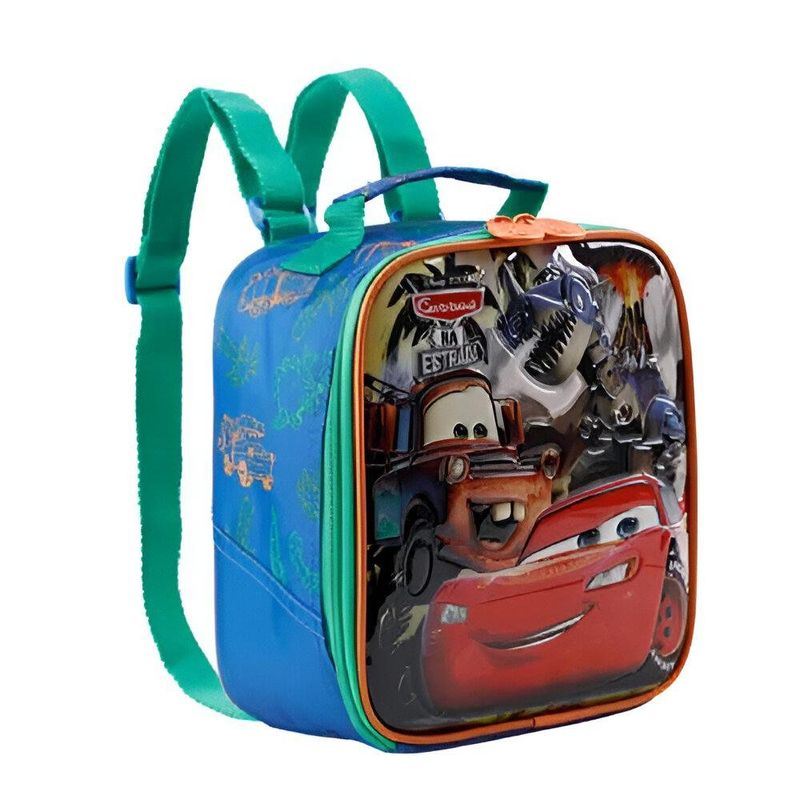 A lancheira produzida em poliéster resistente e estampado. Painel frontal em PVC vincado . Compartimento com revestimento em material que ajuda a manter o frescor dos alimentos por mais tempo. Zíper com puxadores personalizados e piping forrado. Alças reguláveis com faixa para acoplar o produto na haste da mala de rodinhas. Produto certificado.