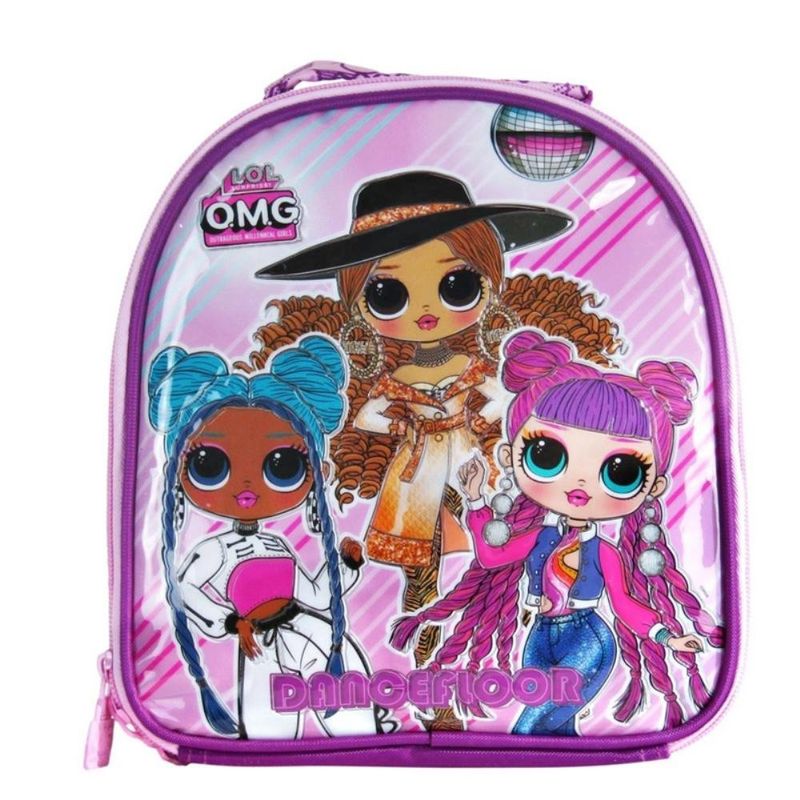 Lancheira produzida em poliéster estampado resistente e vivos em poliester. Seu painel frontal feito em pvc cristal 3D, alça de costa regulavel, alça de mão e puxadores personalizados, compartimento interno forrado com material que permite manter o frescor dos alimentos por mais tempo.